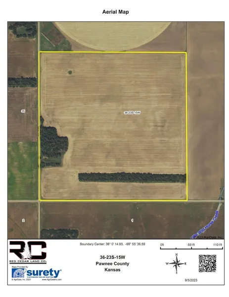 Driving Directions: From Macksville Kansas take Hwy-50 east 1.5 miles to NW 100th Ave. Turn north and go 3 miles. The property is on the north east side of the road at the intersection of NW100th / A Rd.