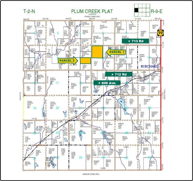 Research Parcel InformationFrom Burchard: Three miles west on 712 Road, turn right (north) on 608 Ave. Parcel 1: Go mile and it's located on the east side of 608 Ave. Parcel 2: Go mile and it's located on the west side of 608 Ave.