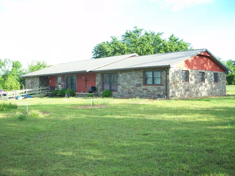 Beautiful 2,200 sq. ft. rock home with three car attached garage, on 19 +/- acres with a pond. Home has 4 bedrooms, with 2 baths, spacious living area with vaulted ceiling, and two covered porches. Master bath has double basin vanity, tub and separate shower.
