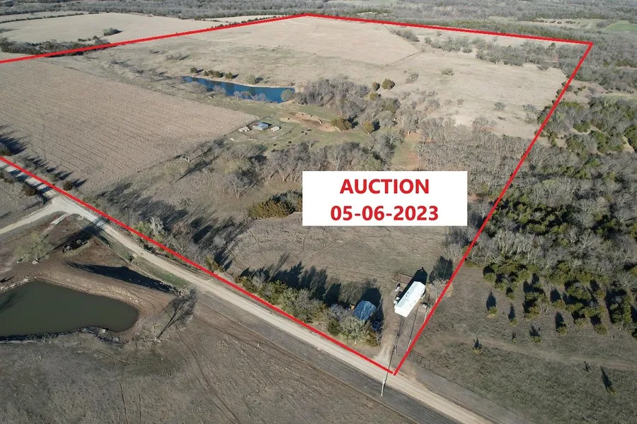 Public auction 05-06-2023 120 acres MOL with single wide 1996 mobile home, storm cellar, detached open garage, 2 ponds (1 spring feed), 2 fenced really nice hay meadows. Balance of the property in native grasses and native trees. 10 % due date of the sale. The property has abundance of hunting and fishing opportunities.