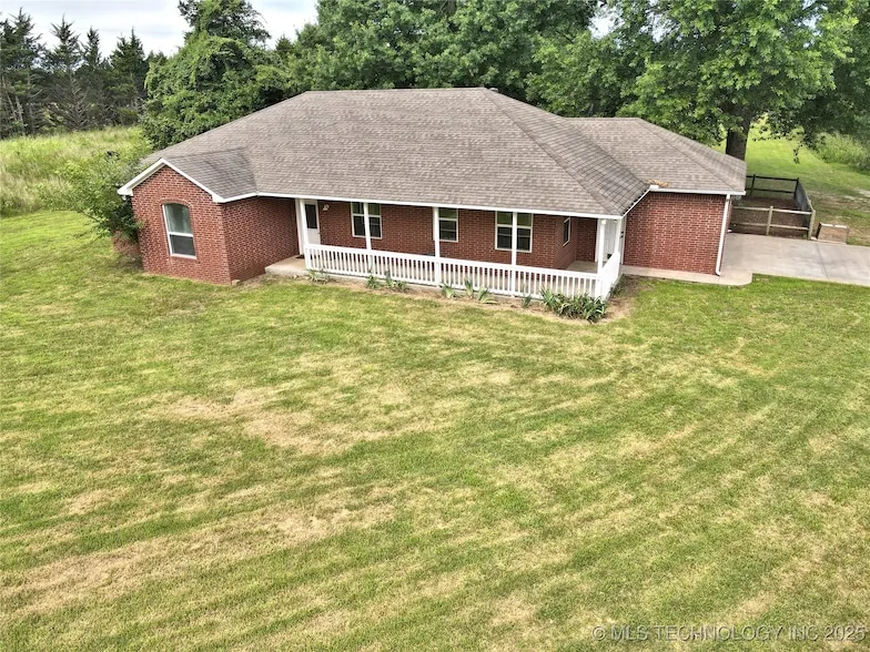 Country living at its absolute best! From the moment you turn onto the private drive, framed on both sides by mature trees, you will be smitten by the beauty and charm of this incredible estate. Situated on 23.67 partially wooded acres, this stunning red full-brick home offers a white-railed wraparound front porch so you can point your rocking chairs to the east and watch the sunrise. The home itself, features custom cabinets, 3 bedrooms with 2 full bathrooms, solid surface flooring everywhere except the bedrooms which have carpet. Thoughtfully equipped with well water, a wood pellet fireplace, aerobic septic w/sprinkler system, above ground storm shelter in the garage & large floored attic space and the home is pre-equipped with cable/DSL internet and a transfer switch for your generator. The acreage produces hay for your livestock and a large barn for protection for your livestock. The garage has two pet doors; one that goes to the fenced area and one to the open property. If you've been dreaming of peaceful mornings and wide open spaces come take a tour of this custom built beauty and see what possibilities are in store!
