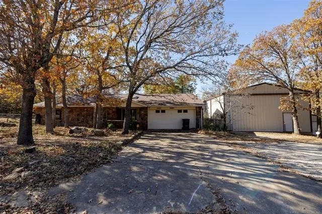 Unlock the potential of this exceptional estate, nestled on over an acre of land, mere minutes from Keystone Lake's tranquil shores. The beautifully maintained residence boasts an expansive open living area, vaulted ceiling, and striking rock fireplace, perfect for relaxation and socializing. The spacious covered deck is ideal for entertaining. The property also includes an impressive 30' x 50' shop , ideal for hobbies, projects, or storing large equipment. For even more storage, there's a 35' x 20' building equipped with its own electric overhead door. The yard is fully enclosed with chain-link fencing and includes a separate dog pen or chicken run just outside the main fenced area perfect for pet owners or those with a hobby farm in mind.
