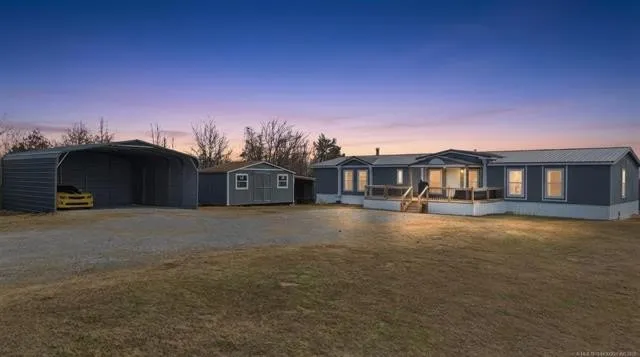 Spacious and beautifully updated 2560 sq ft (CH) 4 bedroom, 3 bathroom home offering two living areas and situated on 5 acres (m/l) in Pawnee County with breathtaking views for miles. This well-designed split floor plan provides excellent privacy and maximizes the use of every square foot. Recent updates include new windows, new metal roof, fresh paint, new vinyl plank flooring, and ceramic tile flooring, creating a move-in-ready home with modern finishes throughout. The large kitchen offers abundant space for cooking and gathering, making it the heart of the home. The primary suite is privately located and is accessed through a versatile sitting room or office space, offering flexibility for work, relaxation, or a private retreat. The suite features a spacious layout with a large walk-in closet, double sinks, a relaxing soaker tub, and a separate oversized shower. Two bedrooms are connected by a Jack and Jill bathroom with tub/shower combination, while the fourth bedroom includes its own private bathroom and large walk-in closet, making it perfect for guests or multigenerational living. Large utility room. New 24 x 26 carport, a storage building, and a newly installed cellar. The property offers paved road frontage, beautiful scenic views, and peaceful country living while still being conveniently located near Highway 412 for easy commuting. Located approximately 30 minutes to downtown Tulsa and just minutes from Keystone Lake, this property offers the perfect balance of space, comfort, and accessibility. Seller believes the home is on a permanent foundation; buyer to verify. Seller believes fiber optic internet service may be available; buyer to verify.