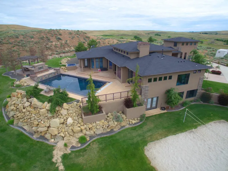 Private luxury custom home situated on a hill with breathtaking panoramic views. Located in New Plymouth, Idaho just a 35-minute drive from Boise, is this 6 bedroom, 4.5 bathroom, 4988 sq ft estate on approximately 20.03 acres. The seller is also offering just the home with 3.83 acres separately for $799,000.