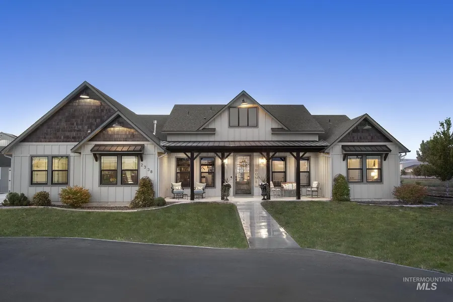 This custom home and Accessory Dwelling Unit (ADU) are situated on 3.6 acres just north of historic Payette. The main home offers a perfect blend of modern convenience and farmhouse charm with open living spaces and vaulted ceilings. The kitchen is tastefully designed for entertaining; featuring 2 of each appliance, 2 sinks, spacious granite countertops, expansive island with bar, 6 burner gas range and butler's pantry. The space flows seamlessly into the great room, oversized covered patio and yard where you can enjoy views of the Cuddy and Council Mtns. The main home features 3 bedrooms, 2.5 bathrooms, and dedicated office. The master suite includes his-and-hers vanities, a tile shower, and a large walk-in closet. The shop features an oversized RV bay as well as a second story for additional storage. Adjacent to the shop is the stunning 600 SF ADU with a full kitchen, bath and living s...