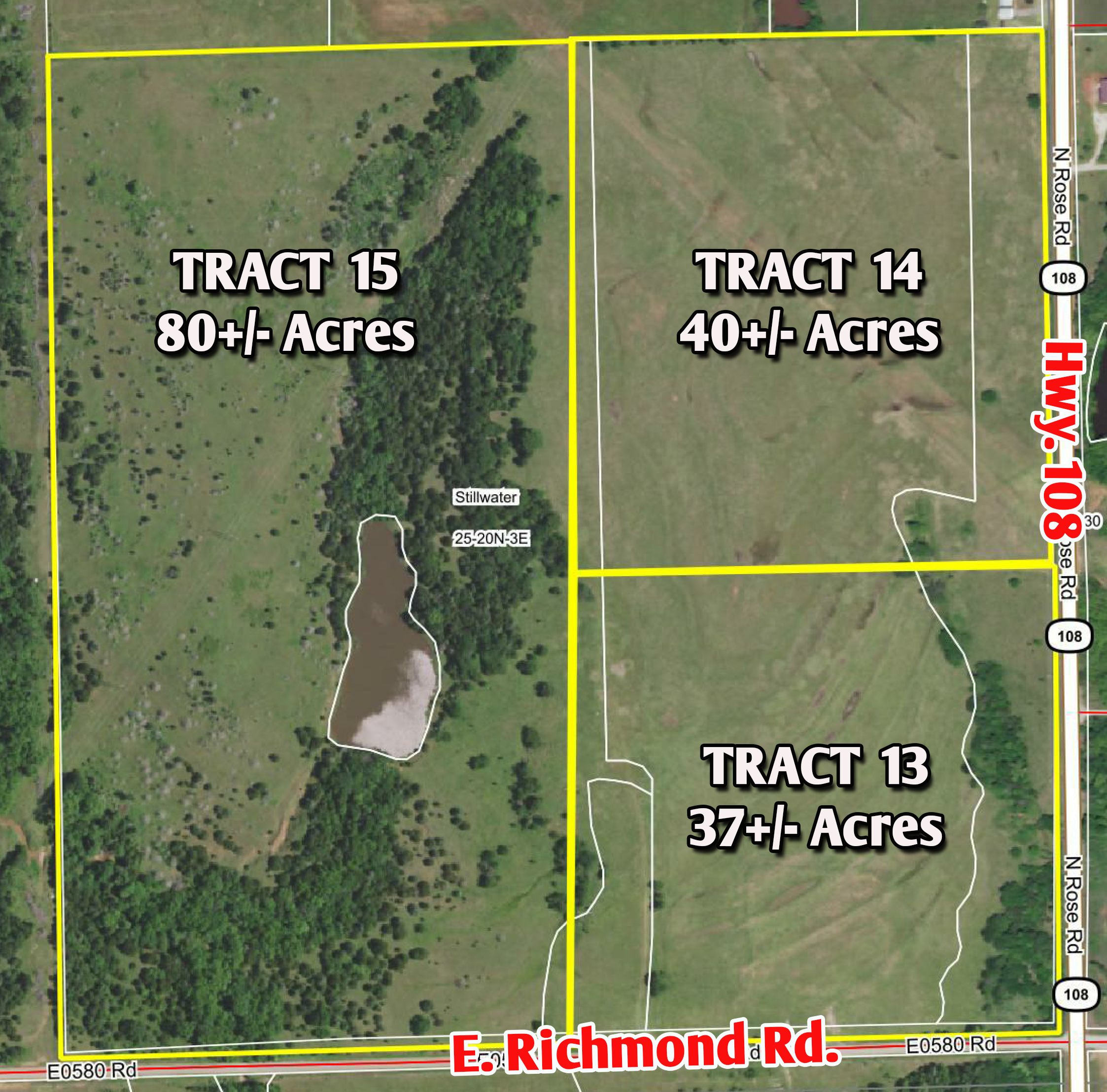 Tracts 13,14 and 15 are located East of Stillwater Go East on 6th ST(HWY 51) to HWY 108 North towards Glencoe-Go North 4 miles Farm is on the West side at the Corner of Richmond and HWY 108-Legal-Tracts are in the SE4 of Section 25-T20N-R3E