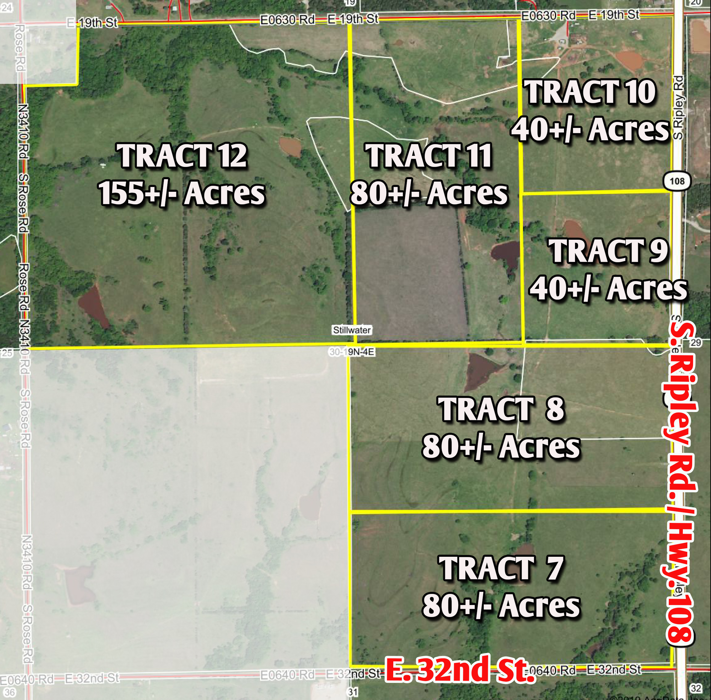 TRACTS 7-12-Located East of Stillwater, OK-Go East on 6th ST(HWY 51) to HWY 108 South-Then South on HWY 108 1 mile to 19th West side of Road-Tracts are in Section 30-T19N-R4E