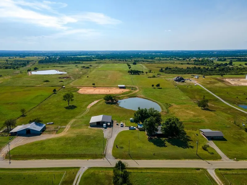 South of the home is a newly built 2,880 square foot barn with built in Priefert horse stalls and concrete floor in living quarter horse trailer storage area. The second barn is also 2,880 square feet with built in stalls for pigs/goats. South of the second barn is a return lane to push cattle from the barn to the arena. Directly west of both homes is a stunning pond for morning and evening porch sitting views, and the second pond is southwest of the main home and stocked with fish. ...