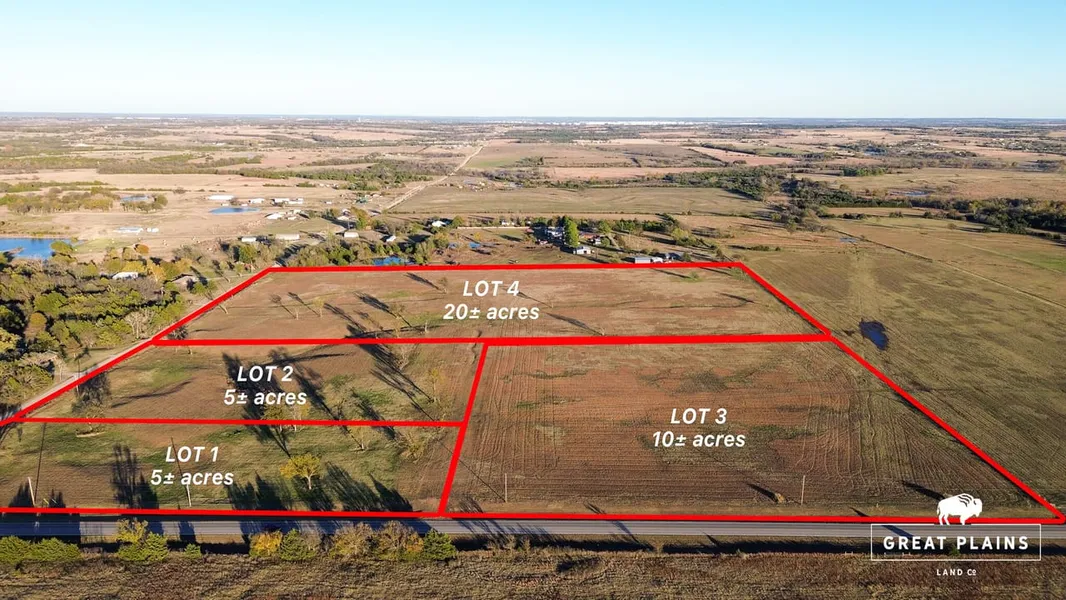 - Lot 4: 20 acres of undeveloped land with Esco Road frontage, power and water available, and multiple build sites.