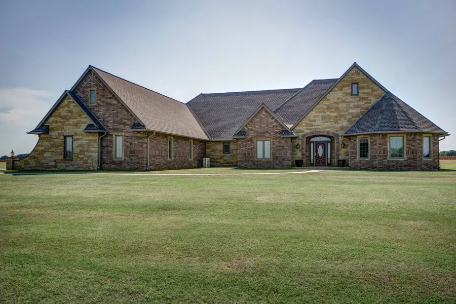 QUALITY CRAFTSMANSHIP BEYOND COMPARISON! Come see this beautiful country home, over 4500 square feet, 20 acres with pavilion and dock overlooking a large pond. Enjoy the open floor plan with a built-in entertainment center, waterfall and front door entrance with copper ceiling inset making this a striking entry. Spacious kitchen with an abundance of solid oak cabinets, gorgeous granite counter tops, bar area, center island; also included are stainless-steel French door refrigerator, induction stove top, convection range, Bosch dishwasher and large multi-purpose microwave oven. Formal dining room with hand crafted dining table and 12 oak dining chairs stay with home. Study has a cherry wood built in entertainment center and electric fireplace, bright and spacious with half bath near. Game room is stunningly finished out in cedar that was cut within 5 miles of home and also has tin ceiling inset over pool table. This fun room also includes a bar with sink, dishwasher, disposal, refrigerator and bath. The custom-made pool table remains for your enjoyment. Also, near is a large storage closet with shelving and Safe Room. Master suite with fireplace has its own Geo thermal unit and hot water tank. Large walk in Snake shower with stationary and hand-held shower heads along with 3 jets on opposite wall. Two separate sinks areas with linen storage and a vanity; Built-in dressers and lingerie chest. Bedrooms 1 & 2 also have spacious closets with shelves and full bath providing a split bedroom arrangement. Dont forget the bonus room upstairs!! Surround sound throughout most of house. Italian Porcelain flooring throughout the home and solid oak interior doors. Pella windows and doors with blinds inside for easy cleaning. The patio hosts an outdoor kitchen consisting of a gas grill, outdoor rated refrigerator and a charcoal grill along with an outdoor rated TV and 6 seat hot tub. The garage has oak cabinets and houses one of the 2 Geo Thermal units and one of the 50-gallon hot water tank. The whole house vacuum unite is also located in the garage. Insulated overhead doors in the three-car garage. The Pavilion has a refrigerator and antique cook stove along with the dock overlooking the pond. There is also a fire pit for those cool fall nights. Flushing toilet. This home is total electric and has an average bill of $275.00. Enjoy the beautiful view and the windmill stays with property! Leather sofa upstairs and TVs in all areas except great room and master bedroom stays with property. Call for more information or to make an appointment to see this great home. 82 more acres are available for purchase.