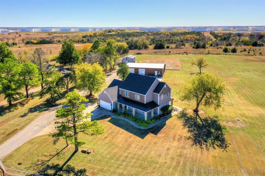 Charming 2-Story Home on 5 Stunning Acres Just Outside Cushing! Discover the perfect blend of country living and modern comfort with this exceptional 2-story home, ideally located just off the blacktop and away from dirt roads, offering both convenience and tranquility!! Completely Remodeled & Renovated in 2012, this home features a stunning open-concept floor plan that invites natural light throughout. The breathtaking kitchen boasts an expansive eat-in bar, exotic granite countertops, and custom cabinets with glass and lighting features. Enjoy the convenience of pull-out pantry cabinets, a water purification system at the sink, a wine refrigerator, and stainless steel appliances, including a gas range; the spacious separate dining area is perfect for family gatherings, while the cozy living room provides a warm ambiance for relaxation; large laundry/mudroom with a full bathroom offers easy cleanup after a day of exploring your acreage. Upstairs, the spacious master suite features a walk-in closet that dreams are made of! Unwind in the stunning master bathroom, complete with a walk-in shower! Recently added in 2024, the 16x16 screened-in back patio creates an amazing outdoor living space, complete with TV connections for relaxing and entertaining! Additional outdoor features include a charming fire pit area with magnificent views of the city and breathtaking Oklahoma sunsets! The property is crowned with a new heritage shingle roof (2023) and boasts an impressive 60x40 fully insulated Red Iron shop building, including a 15x60 lean-to, concrete slab for parking, and 220 electric wiring the ideal Man Cave for all your projects, storage and hang-out space!! A 21x31 barn with spray foam insulation & multiple animal stalls offers a perfect haven for show animals, hobbyists, dog lovers or an excellent solution for yard equipment. Additionally, a new storm shelter (2022) provides peace of mind. Be in your dream home for the holidays & New Year! Call for a showing today!