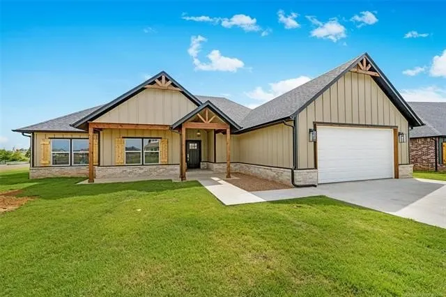 NEW CONSTRUCTION | ONE STORY | Trio Ridge is a new development in Stillwater. The country life surrounds this new development with lovely views and only miles from town and Oklahoma State University. Open Floor concept with 4 bedroom, 3.5 baths and an office. Quality details throughout the home. Kitchen includes soft close cabinet doors and drawers, granite countertops, tile backsplash, large walk in pantry and abundant storage space The primary bedroom has double vanities, spacious walk in closets, walk in shower and soaking tub. The home has real hardwood floors throughout with tile in laundry and carpet in bedrooms. Covered back porch with pond views in the back provides great outdoor living space for family and friends. A MUST SEE!