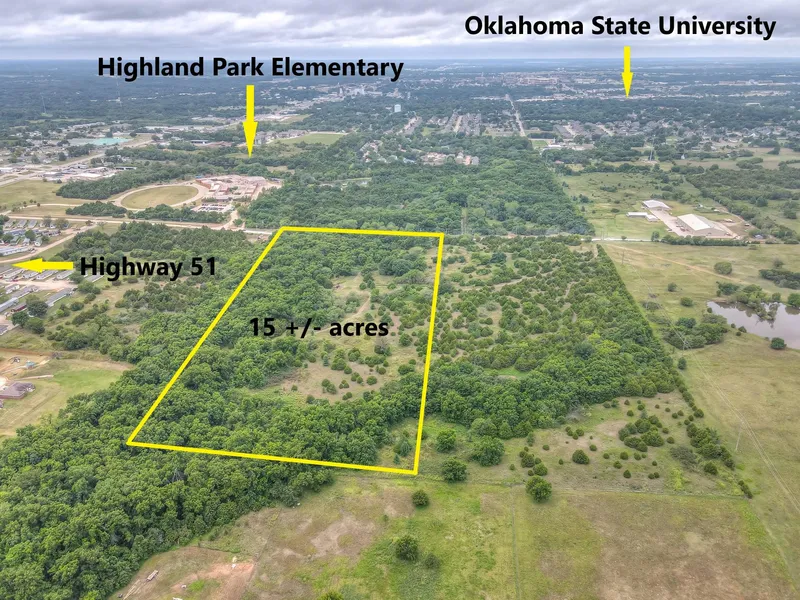 LOCATION LOCATION - 15 +/- acres with endless opportunity near Highland Park Elementary School in Stillwater, OK. Located just 1/3 of a mile North of Hwy 51 with great access and all utilities nearby. Perfect place for a future business, residential development or investment. Don't miss this opportunity, call today! Additional Land Available.