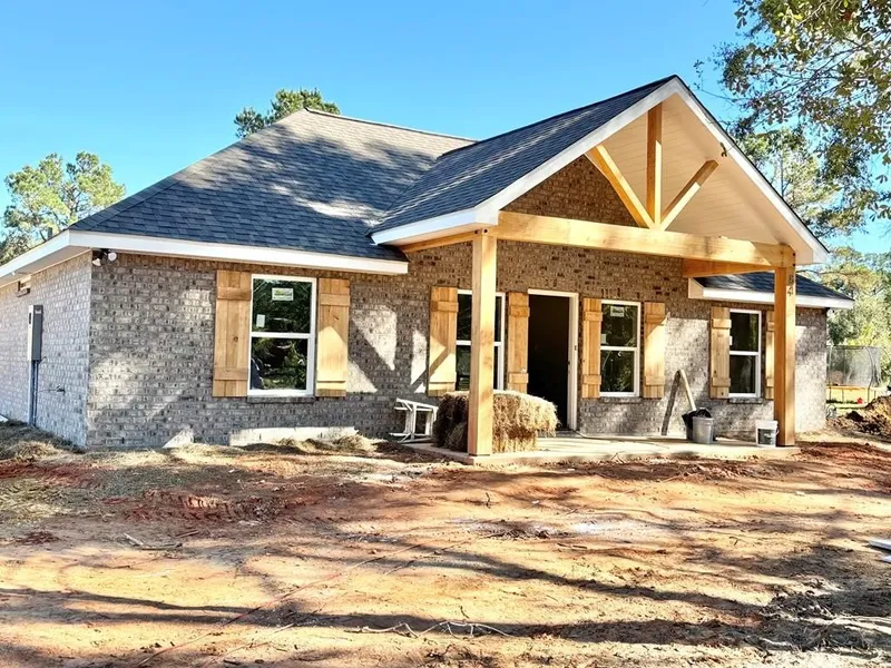 GORGEOUS NEW HOME on 1.29 acres only minutes from I-59, shops, schools, restaurants, hospitals, and much more. Perfect home for a commuter or starter home. Back half acre not cleared, but has beautiful woods for privacy. This beautiful 3 bedroom 2 bath home has an open floor plan with cathedral ceilings, gorgeous, black beams with black/bronze fixtures, white shaker cabinets, and gorgeous white quartz counters throughout. Beautiful wood beam and black fixtures really show the quality! Inside photos are not of the actual home but of the same builder/plan. Materials/colors, may vary.