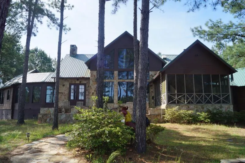 Custom built cypress & heart pine 6000 sq ft lodge overlooking a lake managed for trophy bass