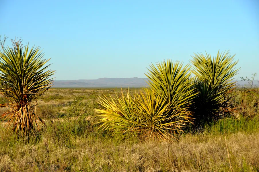 The landscape consists of one-half foothills to the Glass Mountains and the other half deep-soil bottom land. This ranch lies at an elevation that supports a mix of vegetation from the mid-Chihuahuan Desert such as century plants, Spanish dagger, yucca, agarita, sotol, and cholla, with a dominant gramma grass mix and scattered bush/trees, including creosote, mesquite, hackberry, and soap berry. Native grasslands provide excellent forage for livestock as well as habitat for Mule Deer and native birds and mammals. The ranch also has several ridges and hills rich in a diversity of rocks and minerals, including many types of agates.