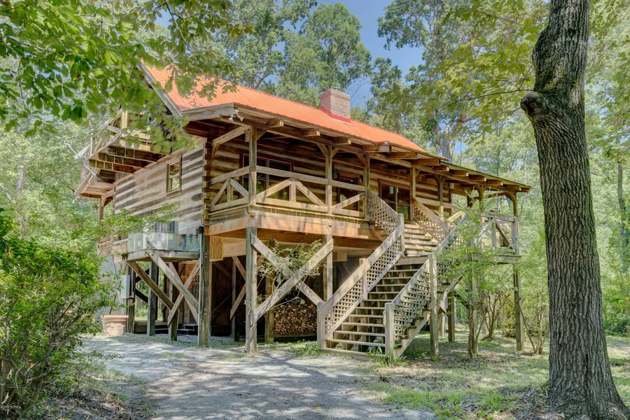 Escape to paradise. 53.82 acres of woods to walk through and explore. Marvel at the majestic beauty of nature. Located on Moores Creek. Navigable water for canoeing and kayaking. Step back into a simplier time as you enter the log home. Wrap around porch that offers views of the creek, coy pond, wildlife, farm buildings and woods as far as you can see. Bamboo flooring. Cathedral ceilings with wood burning fireplace in the center of the home. Upstairs loft bonus room offers an outside balcony. Beautiful soft close birch cabinets in kitchen. Stainless appliances. Socially distance here where you can't see a neighbor in site. Enjoy your land without restrictions. Approximately 10 acres of cleared land for pasture is fenced and has water. Storage room, dog kennel and fodder room downstairs. Farm building close to house with cement flooring partially enclosed and partially open. Large farm bu...