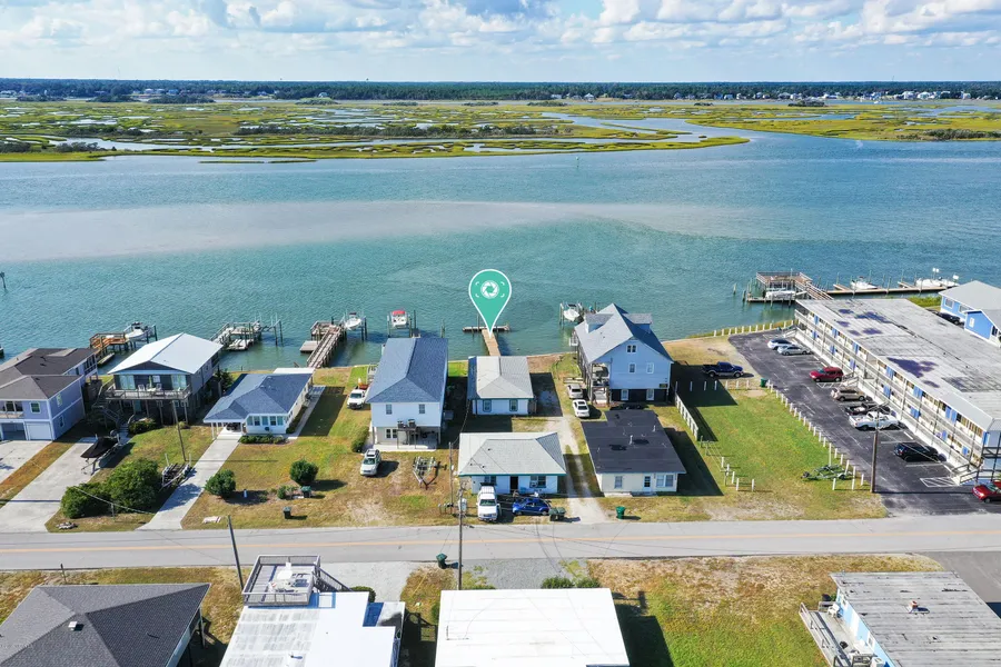 A true gem in the desired community of Topsail Beach! Nestled in the heart of downtown, this property is conveniently located in a 'No Wake Zone', overlooking the tranquil waters of Banks Channel. A recently upgraded bulkhead leads to your pier providing deep water access, even at low tide.Boasting a piece of history, this sound front parcel currently hosts two of Camp Davis' barracks, constructed in the 40's - 50's. Utilize these structures as a foundation for your dream home or clear the Lot and start with a blank canvas.Deep water, reduced wake in the heart of downtown; this is a rarity!!