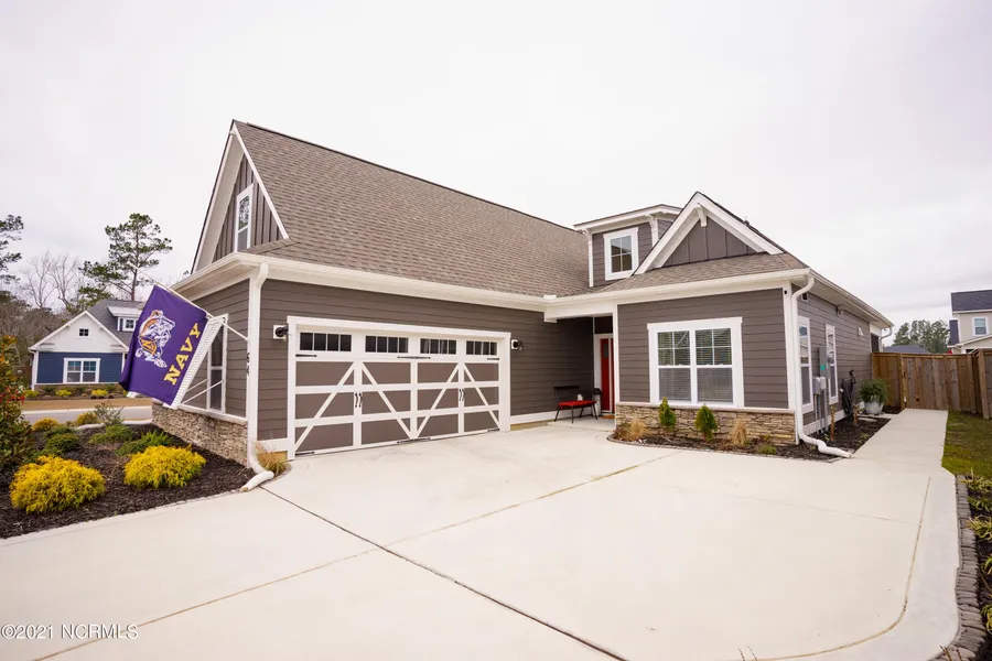 All the bells & whistles are in this 4 bedroom/3 bath coastal home! This open concept floor plan is great for spending time w/ family or entertaining guests. The spacious living room features vaulted ceilings with accent beams, gas log fireplace, & hardwood floors through out the main living areas. Entertain your guests in the chef's kitchen; it has stainless steel appliances, granite countertops with an island bar area, farmhouse sink, butler's pantry leading to the formal dining room w/ wainscoting & coffered ceilings. The expansive owners bedroom has a Presidential ceiling with rope lighting, large walk in closet & an en suite bathroom that feels like you are at the spa! On the main level you will also find 2 guest bedrooms, guest bathroom, laundry room w/ built in drop zone, & plenty of storage! Upstairs is a bedroom/ office with full bathroom. Enjoy the spring/summer on your screened in back porch or enjoy swimming at the community pool! The 2 car side-load garage has epoxy floors. Short commute to Wilmington & Jacksonville , close proximity to the marina, Kiwanis Park, & beaches!