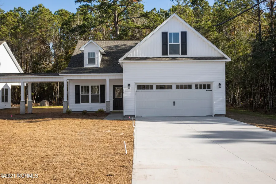 Centrally located in Hampstead, this 3 bedroom, 2 bath single family home has a bonus room over the garage, and its situated on a private street with a reasonable HOA. Park your boats & RVs in the driveway and have any breed of dog with no HOA limitations! Open living area with LVP flooring, 9 foot ceilings, kitchen with granite counters, pantry, stainless appliances, fridge included... Plus, you can rock out to your favorite playlist on the Bluetooth pendant lights over the bar! Master suite has a huge walk in closet, en suite bath with double vanity sinks, and marble counters. Programmable Wi-Fi thermostat, LED light fixtures, USB outlets, wifi dead bolt, & garage keypad entry. Mature trees, private road, low maintenance home & yard, convenient access to Wilmington, Camp Lejeune, and Topsail Beaches. Should be ready for closing by February!