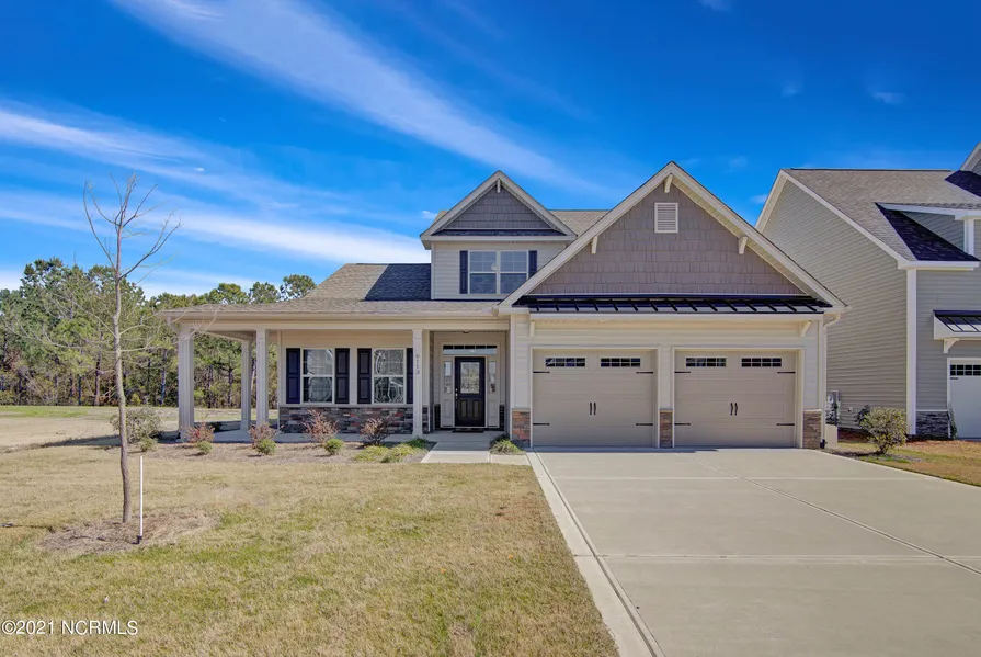 Welcome home to The Granville built by Caviness & Cates in Hampstead's newest community, The Sanctuary at Forest Sound. This charming 2-story home includes 4 bedrooms and 2.5 baths and nearly 2800 sq ft of living space. You will love the extended covered front porch with the exterior of this homes showcasing stone accents, white siding and shake, metal roof accents and black gutters. Walk inside and you will be wowed by the custom details throughout. The dining room is perfect for holiday gatherings and includes coffered ceilings and picture frame wainscotting, with easy access to the kitchen. The kitchen features timeless white cabinets, quartz countertops, tile backsplash, double door pantry with wood shelving and stainless-steel appliances, including a natural gas stove. Flowing seamlessly from the kitchen, is a large breakfast area and great room with natural gas fireplace. For extra...