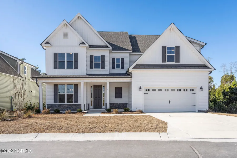 Move-In Ready! Welcome to the Masonboro, built by American Homesmith in The Sanctuary at Forest Sound. The large covered front porch creates a great outdoor living area and welcomes you to this spacious 2 story, 4-bedroom, 4-bath home with stone accents and metal roof over the garage entry. The open concept plan showcases a formal dining room and a spacious kitchen overlooking the family room and large breakfast area. No detail has been left behind in this home. This kitchen features large center island with farmhouse sink, quartz countertops, tile backsplash, stainless steel appliances including a natural gas cooktop with hood vent and wall oven and microwave, making this home perfect for entertaining. The bright and spacious family room has a shiplap fireplace with natural gas logs and opens to the 250 square foot covered porch. The first floor is completed by a guest suite and mudroom off of the garage. Upstairs there is plenty of room for all. The master suite boasts a trey ceiling, two sinks, walk-in shower and a generous walk in closet with custom wood shelving. Two additional bedrooms, bathroom, large rec room or fifth bedroom with bathroom, and a laundry room complete the upstairs. This home will feature a sodded and irrigated yard, gutters on the front and back of the home, wide plank laminate flooring on the first floor living area and natural gas tankless hot water heater. The Sanctuary at Forest Sound is centrally located in the heart of Hampstead. 15 minutes to Wilmington or Surf City/Topsail and just 1 mile off the Intracoastal Waterway. Future proposed amenity includes a boat storage area. All options, finishes and completion dates are subject to change. See agent for details on selected finishes.