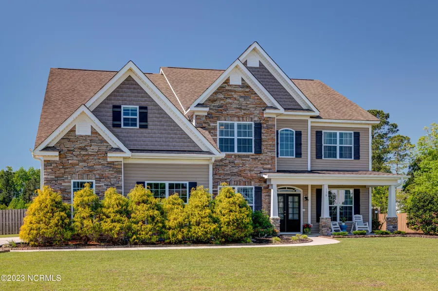 Beautifully maintained home with so many amazing features to wow you! Tiled bathroom floors and hardwood floors downstairs. Stunning coffered ceiling in the dining room and crown molding throughout the downstairs. A double oven, gas cooktop range, reverse osmosis water system in the kitchen. Soft close cabinets and drawers in the kitchen. There is a butler's pantry and in addition a bar area between the formal dining room and kitchen! Extra storage underneath the stairs as well. Guest room with en suite downstairs for privacy. Each of the bedrooms upstairs has a walk-in closet, and the owners suite boasts a tray ceiling with sitting area. There are two bonus room areas upstairs! There is plenty to enjoy outdoors as well with a huge fenced in backyard including a fire pit and shed. The large back screened in patio is a perfect place to relax and unwind. Both the front and back yard are beautifully landscaped, accenting the stone siding and gorgeous roof lines. The house has a large 3 car garage to store your vehicles or toys. This neighborhood of Hampstead Landing is located in the Topsail School District and equally distanced from Surf City and/or Wrightsville Beach, and an easy drive to downtown Wilmington. Truly a gorgeous, move in ready home. Do Not Convey Items include: Curtains in study area, dining room and downstairs bedroom, wood rack mounted on wall in garage used for portable power drills.