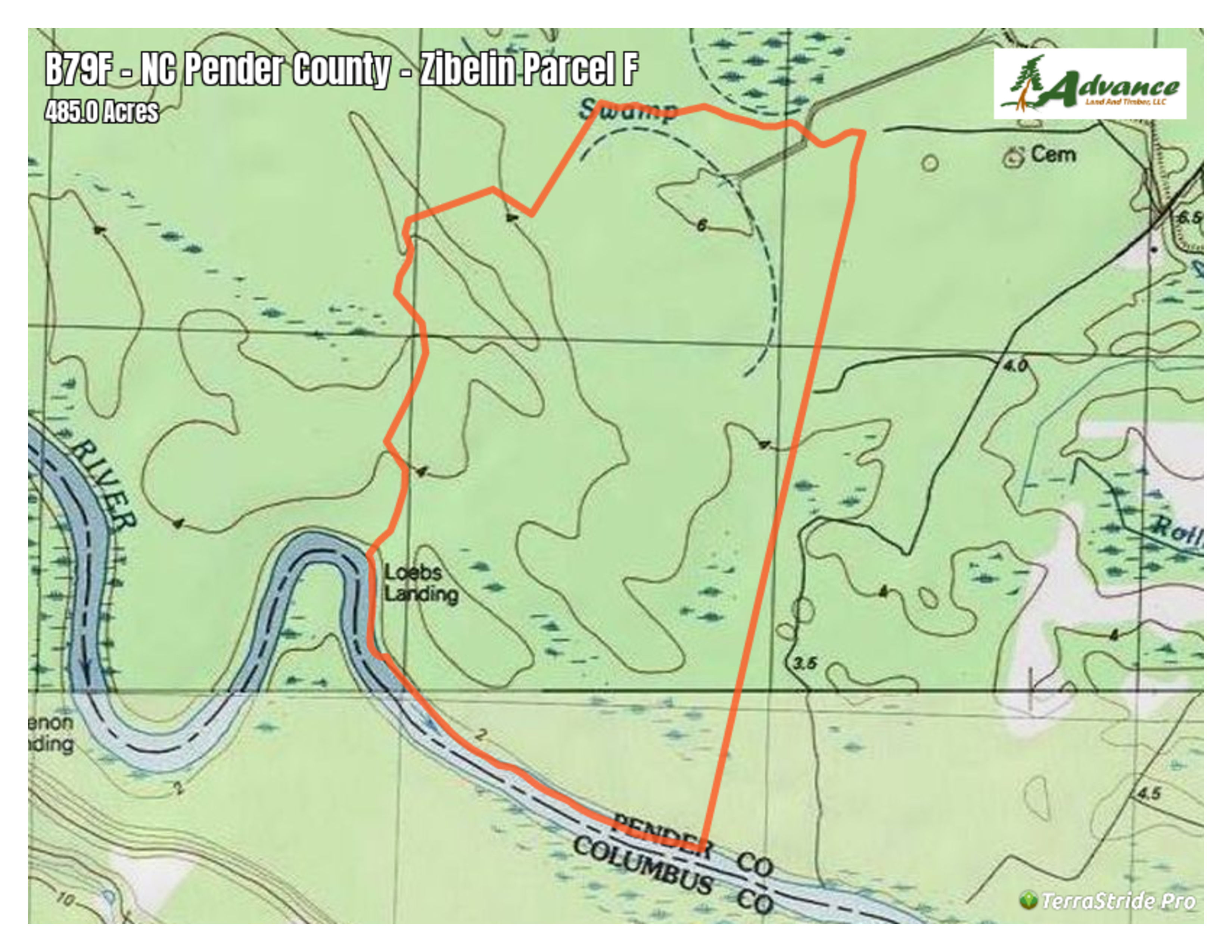 Parcel F consists of 485 acres along the Cape Fear River in Pender County, NC. The diversity of soil types makes this property a great hunting tract. This property is known for its exceptional waterfowl habitats as well as being loaded with deer, turkey, black bear and hogs. It has everything from upland pine plantations to natural flooded areas and cypress swamps. There is 0.86 miles of cape fear river frontage and has a great internal road system allowing you to access the entire property. This property is accessed through a 50 ft. deeded easement through Parcel E off Buckle Road.