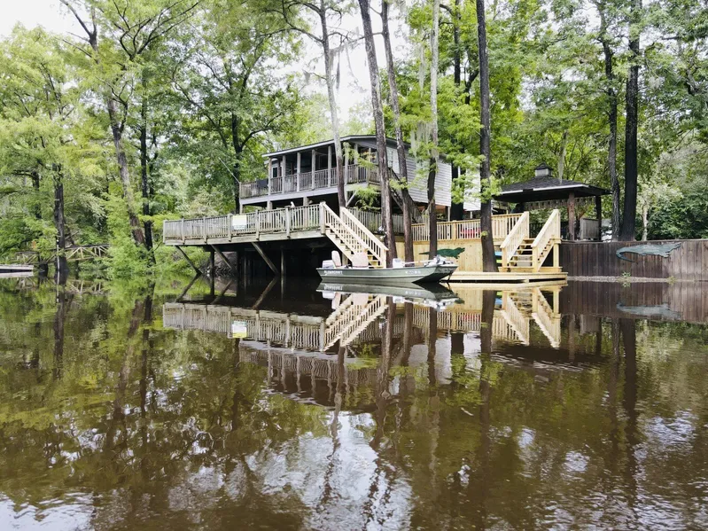 Located on the gorgeous Northeast Cape Fear River, this charming 2-bedroom, 2-bathroom cabin is ideal for a fish camp with friends, weekend getaway with family, or a primary residence. The large front porch sits on the banks of the river offering gorgeous views up and down the river. A covered gazebo offered a resting place after a day of boating and fishing. Tie up to your bulkhead, walk up your steps, and your home.