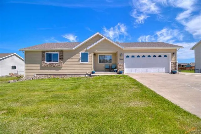 Looking for an attractive 4 bedroom, 2 bath, 2 car garage, ranch style home located minutes from Douglas Schools & Ellsworth AFB? Your search is DONE! Curb appeal...check. Fenced in yard...yep! Move in ready...you know it! Nestled in the quiet Prairie View Estates Subdivision, this home has an attractive floor plan, spacious back yard and new roof & gutters. Main floor boasts updated Pergo laminate flooring, bedroom carpeting, stainless appliances, and paint. The dining area has walkout to deck. Also, the master bedroom has a walk-in closet & second vanity sink. The basement features a daylight family room, 2 bedrooms, bathroom & laundry. More? There is a jetted tub that is not part of the bathroom as a BONUS. There is a lot of bang for the buck with this property, especially considering the location. I won't say that these homes sell like hot cakes...but I will say something smells good in the kitchen.