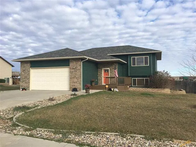 CENTURY 21 ClearView Realty presents another Creekside Estates beauty! This attractive 4 bedroom, 3 bath, 2,639 sq. ft., split level home "pops" the moment you step into the home. The main level features an open concept floor plan with updated Pergo laminate flooring, breakfast bar island, stainless steel appliances, master bathroom with his/hers linen closets, and an abundance of natural lighting. The lower level boasts a wonderful size family room, updated Pergo flooring, two additional bedrooms, laundry/utility room, and a WALK OUT to the .59 acre privacy fenced in back yard. Home is equipped with Vivent security system. Located only minutes from Douglas schools, Ellsworth AFB and Rapid City, this is a very nice property that lacks only one thing...YOUR FAMILY!