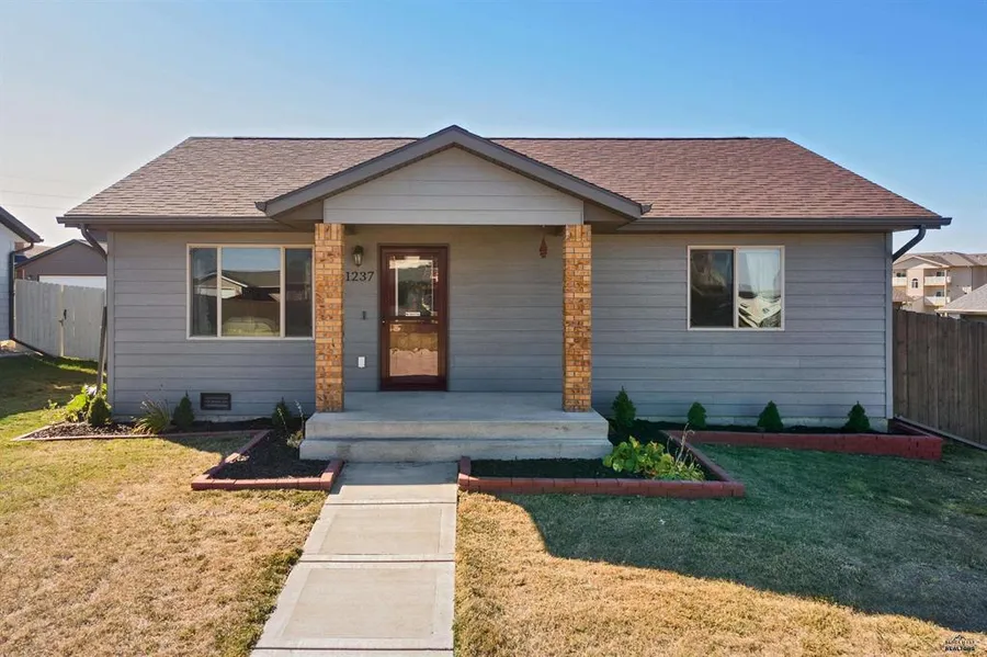 MOTIVATED SELLER!!! Bring us an offer on this wonderful 1,064 sq. ft., 3 bed, 1 bath, 2 car fully-finished garage home. Your future home is move in ready. The dedicated living room offers an abundance of natural light with the front door having built in blinds. There is one flooring throughout the common areas making the home feel open and inviting. The kitchen has mocha colored cabinetry, stainless steel appliances, new countertops, and walkout to the garage. The owner upgraded to a 6 ft, double walled privacy fence with locking gates. The roof was upgraded to UL4 shingles, freshly painted in most rooms upon move-in, added new tile flooring in 3 rooms (bedroom, bathroom, and laundry area), and had custom built shelves in several rooms. Don’t let the Dallas décor fool you, this home is made for any fan. The owner loved the neighbors, easy access to Ellsworth AFB & the Interstate, the att...