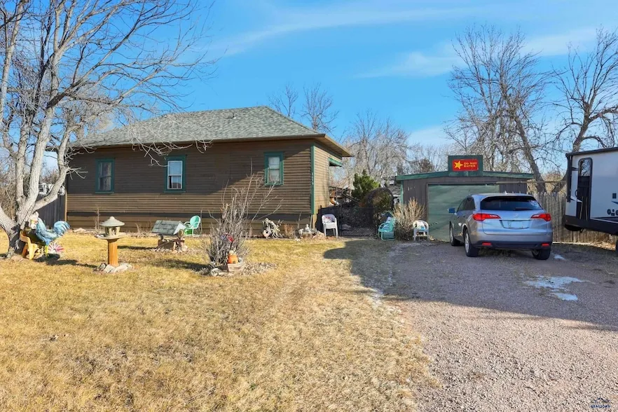 Listed by Matt Stewart, Keller Williams Realty BLACK HILLS, (605) 430-7695. Welcome to a home that has been in the family for many generations. The home is well lived in, but with the right updates can be a great home with some awesome acreage. It is currently set up as a 2 bedroom home, but a wall could be installed to turn it back to a 3 bedroom home. The home is complete with a bathroom, combined kitchen & dining space, and a laundry/utility room. Outside there is a 1-car garage, sheds, an older barn, and the home sits on over 6 acres of land that borders Rapid Creek. This property is located in the floodway so please do your research on insurance requirements and reach out to the county for any future building questions or requirements. The home is being sold as-is with the seller making no repairs. Don't miss out on your opportunity to own this home on a great piece of property.
