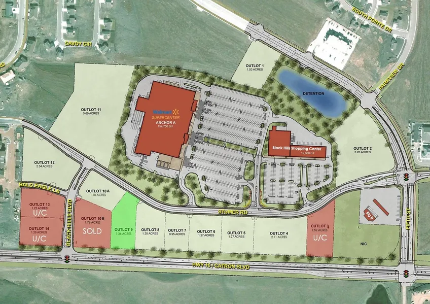 Premium development opportunity anchored by Walmart Supercenter and Black Hills Shopping Center. This listing is for Lot 9. Will be platted to suit. Eleven lots (0.95—5.69 Acres) zoned General Commercial / Office Commercial with frontage on Catron Blvd. Accessed by lighted intersections at Catron and Black Hills Blvd or Catron and 5th St. All lots are also available for ground lease. Listed by Chris Long, 605-335-8100, Keller Williams Realty Black Hills.