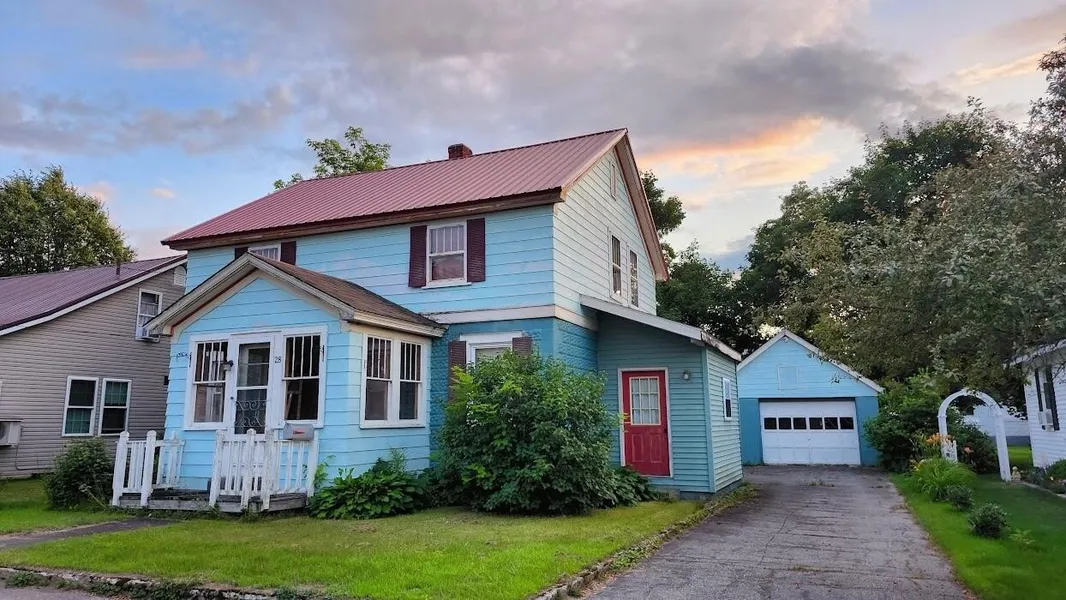 4 BED, 1.5 BATH Colonial -- Stone House with paved driveway and garage with nice level backyard. Home is very comfortable offering two nice entry areas; one glassed-in porch and one side entry off the driveway for convenience. Home has supplemental heating with hot water steam radiator, pellet stove, and wood stove options. Tall ceilings, wood floors, walk-up attic space, metal roof, and large rooms. COME SEE!!