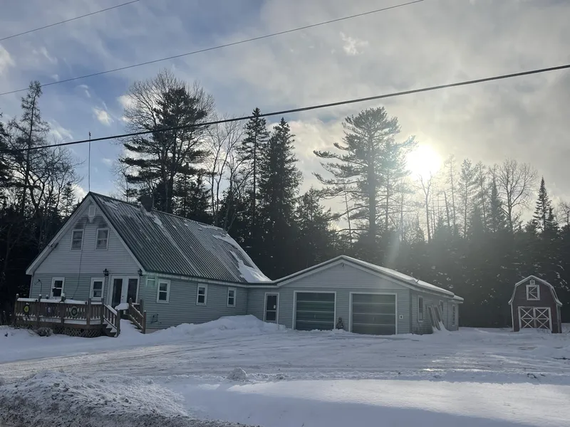 Set on 2.3 acres, this welcoming chalet-style home offers two bedrooms with the potential for a third and a warm, comfortable feel throughout. The first floor includes convenient laundry and a practical layout well suited for everyday living. A large attached garage with space for three or more vehicles provides plenty of room for storage, hobbies, or outdoor gear, while an additional shed adds even more space for tools or seasonal equipment. With its classic chalet character and generous outdoor space, this home offers a cozy country feel while remaining easily accessible.