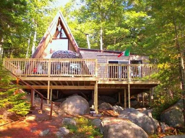 Maine Waterfront for sale thru Cabela's Trophy Properties- Privately situated along the shores of Ambejesus Lake this well cared for cottage with two bunkhouses offers a place to kick back, relax, and enjoy the pleasures of the Maine North Woods. The property offers plenty of room for family and friends to gather offering a three season retreat with all the amenities. The views from the property are breathtaking offering sunsets and Mount Katahdin off to the north. The water frontage is deep in this Pemadumcook Chain of Lakes which offers over 18,000 acres of spring fed waters. This legendary chain of lakes I over 100 feet deep and is home to brook trout, salmon, togue, pickerel, white fish, cusk, and perch. The cottage is located in the Katahdin Region offering the finest recreational adventures and trails year round. The proximity to a full service community is less than 30 minutes awa...