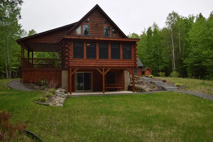Privately situated along the shores of Junior Lake offering seven acres with 650’ of water frontage. A log home that has had two owners since being built. The property is in meticulous condition offering three bedrooms and two baths with a stone chimney and wood stove in the beamed ceiling living room. Open concept kitchen, dining, and living room create a spacious living space. A first level bedroom and bath, if needed, plus a great three season porch completely finished lakeside. Two bedrooms and bath on the second level with cathedral ceilings. A two bay garage with work shop and a second level storage area that could be converted to living space. Also a generator building for those times in need. The meandering path with mature trees leads to the shore frontage which is rocky and deep. Junior Lake offers miles of navigable waters all the way to West Grand and the Grand Lake Stream R...