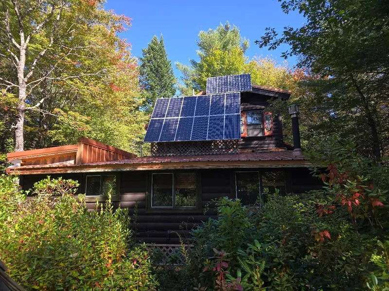 Secluded off grid home on 81 acres! This 2 bedroom home is located in a beautiful forest of mature trees. It is completely set up with solar and generator for off grid year round use. The land consists of 4 surveyed lots being sold together. Absolute privacy!