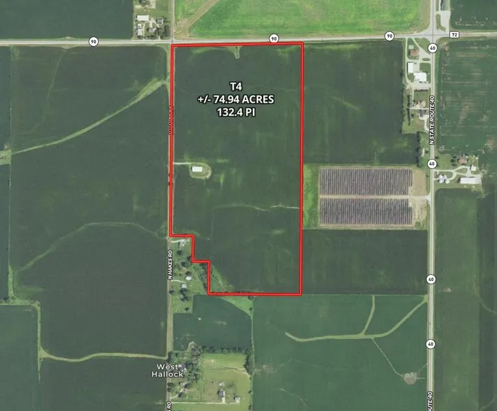 T4: +/- 74.94 Acres, Highly Productive Soils, 132.4 PI.