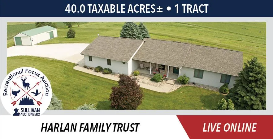 The Harlan Family Trust farm will be sold on a price per acre basis, based on taxable acres.