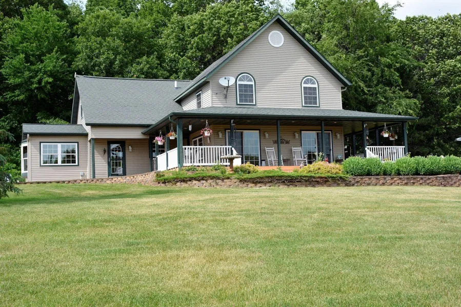 PRICE REDUCED!! This beautiful home epitomizes the country living with a refined lifestyle. A full renovation occurred between 2003-2014. The owners took their time and did it right! Not a detail was left untouched. Enjoy a gourmet kitchen with contemporary lighting and fresh décor. A beautiful tile backsplash blends with soft tones of the countertops and beautiful hickory cabinets and floors. The home has beautiful eastern exposure and the windows flood every room with natural light. A professionally installed hardscape allows your family to enjoy the exterior space as well. You will enjoy the brick paver deck on those cool summer nights where you will see no neighbors as you enjoy a quiet evening watching a crackling fire. The location is perfect as it is only 15 minutes to Durand and Mondovi and less than 30 minutes to Eau Claire. Beautiful hickory floors, quality windows, and doors just make this home feel cozy. The flow of the home just feels good and the energy is very inviting. Enter either from the covered porch or the mudroom into the kitchen. You can almost imagine your friends gathering here. As the light dims toward evening, retire to the hardscape patio and gather around a bonfire and enjoy the million-dollar views. There are no neighbors in sight and the property is almost entirely surrounded by Wetland Reserve Program acreage. The grasslands and woods around you abound with wildlife and will never be built upon. The ultimate in privacy on this dead-end road. Qualified buyers should call Land Specialist Neil A. Hauger for a private tour today.