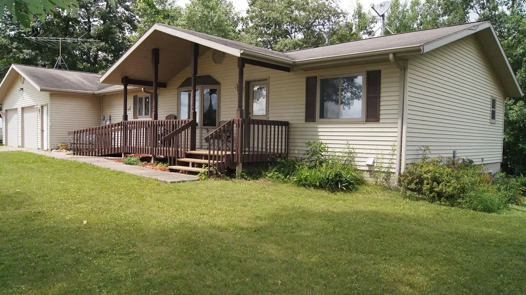Ranch style home with all living facilities on one level, 2 car finished attached garage, wooded 7.5 acres to explore and hunt on, 16' x 24' pole shed with cemented floor and all located on a very quiet town road in the country. The home has vaulted ceilings, walk-in closets, gas fireplace, private backyard deck, 8' x 10' garden shed and a walkout basement.