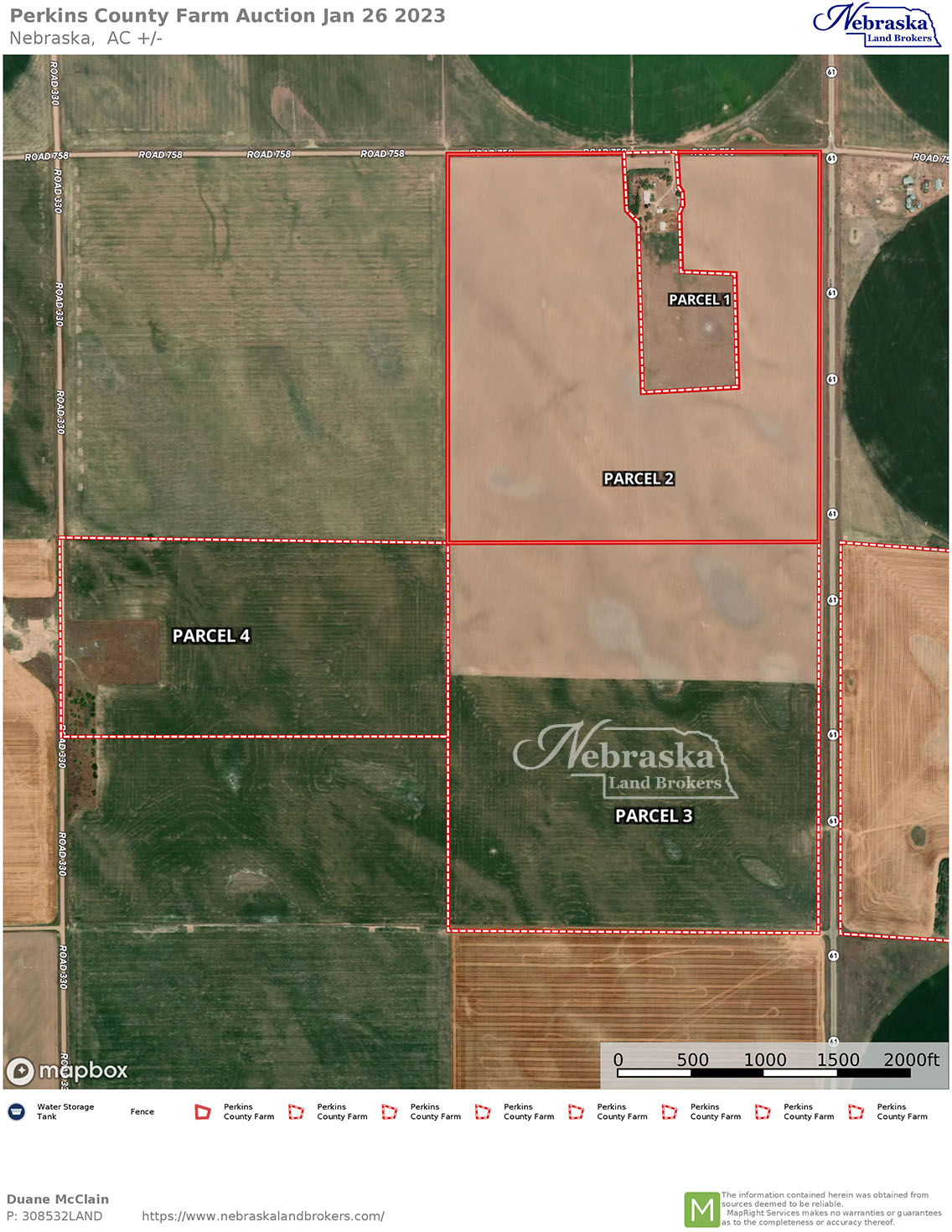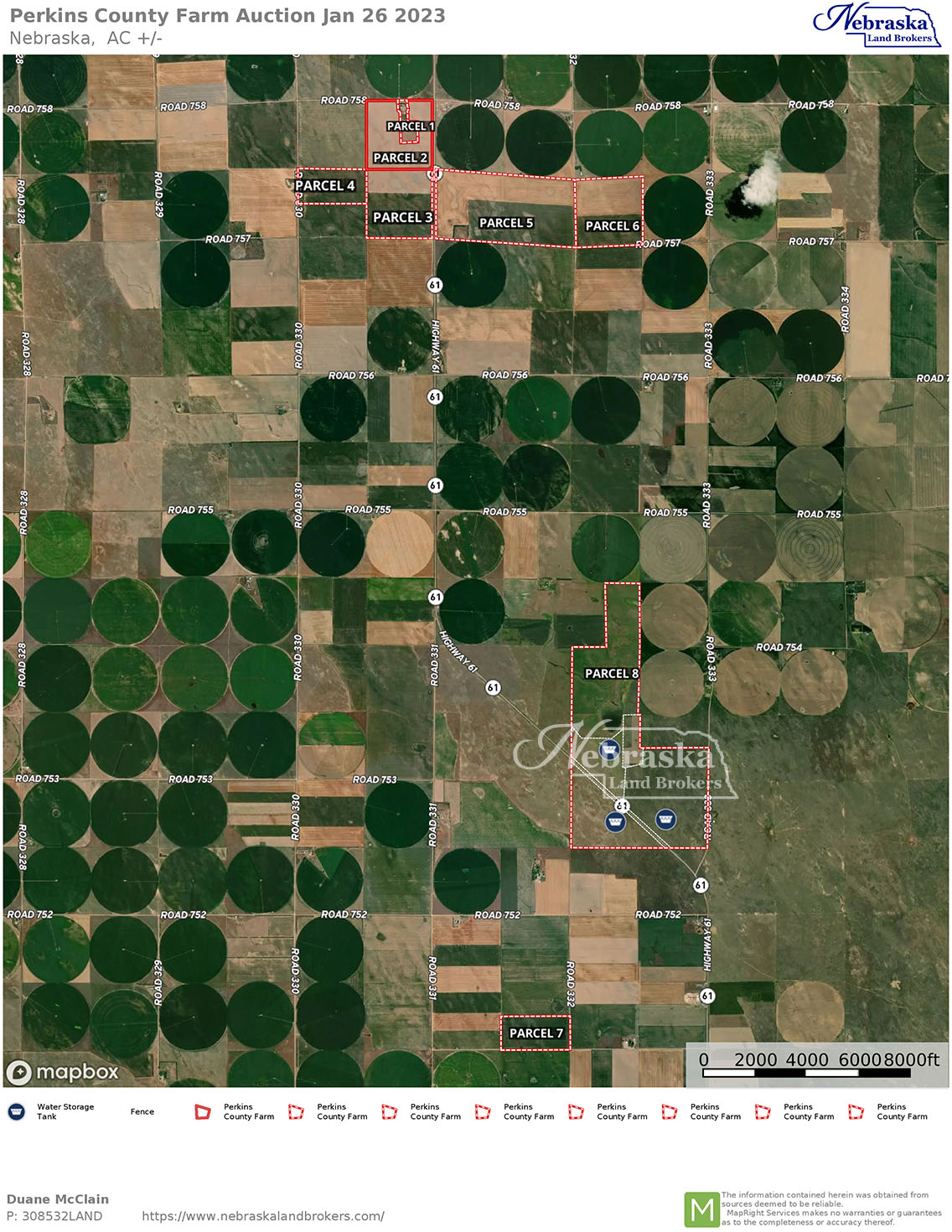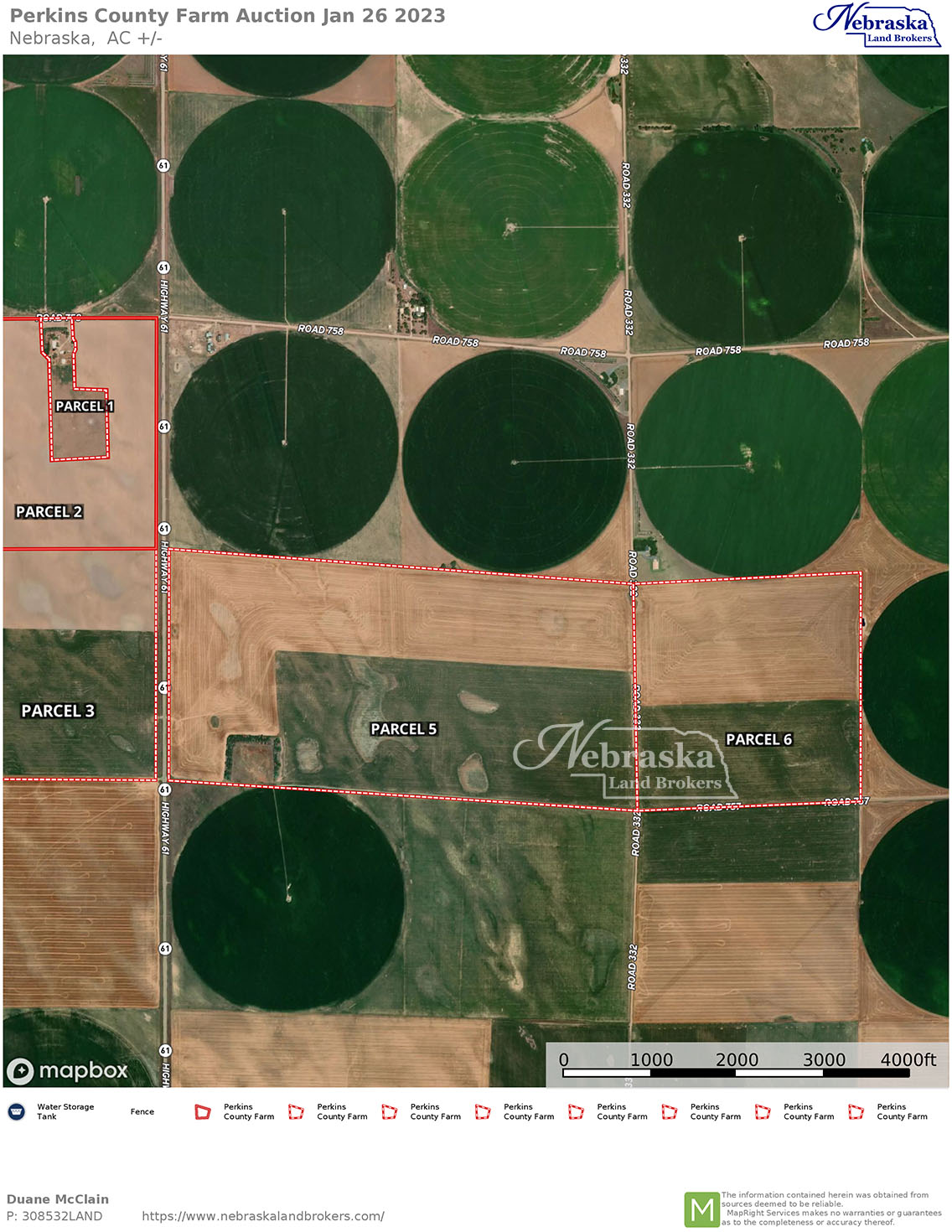 Nearly all of the cropland is located about 4 miles southeast of Grant NE along Highway 61. A 17 acre building site will be offered as a separate Parcel. The 777 acres of grass pasture is located 11 miles south of Grant on both sides of Highway 61.