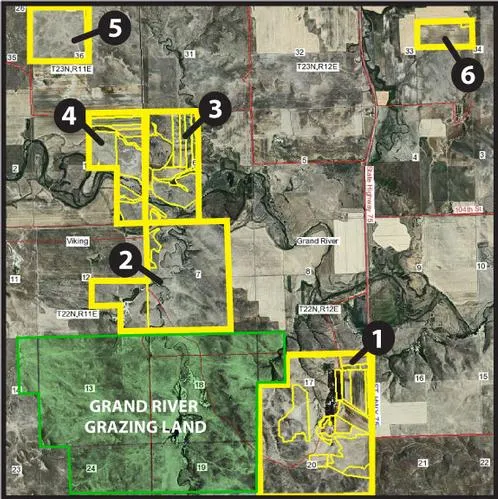 Auction Note: This is a highly productive ranch featuring excellent livestock grazing, dry land farming, hay & forage production. It has several out buildings including a home, 2 pole barns, machine shed, wood frame Quonset, garage, 3 grain bins, a hog barn, corrals, and other wood outbuildings.