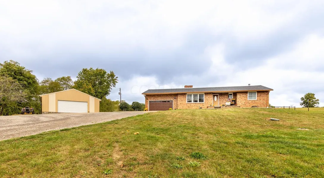 What a view from this home, Brick Ranch 3 Bedroom, 2 1/2 Bath, Full Basement. Home Features many updates, windows, roof, HWH, countertops, garage door, flooring, tile and move in condition. 1st floor Laundry, Fireplace. The Outbuilding is 30x40 with electric and concrete floor. Front porch has beautiful views south and the rear patio looks over a pasture. Come and make this your lifelong Home. Easy to New Lex just outside the City.