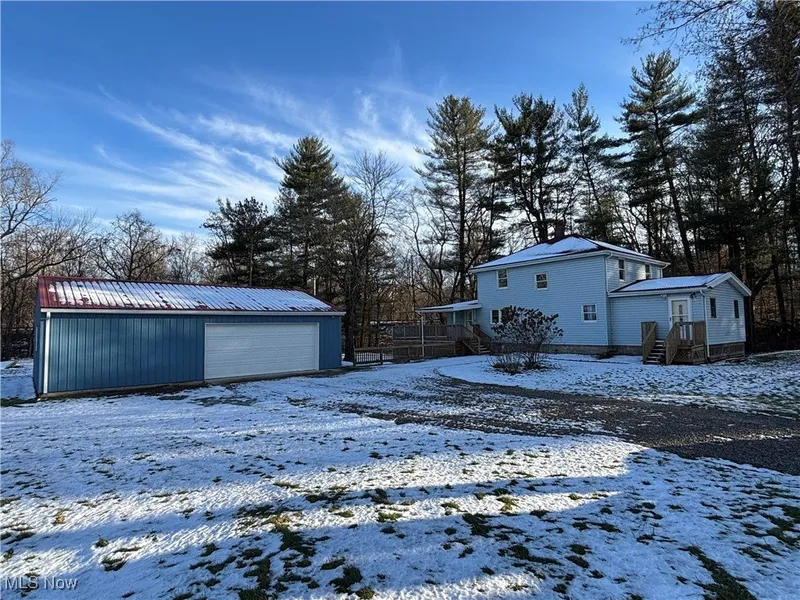Unique opportunity with this property offering three parcels totaling approximately 3.87 acres in the Franklin Local School District. Versatile 24x36 detached metal garage with electric provides excellent space for storage, hobbies, or future use. Expansive acreage offers flexibility for outdoor enjoyment, additional structures, or potential future plans (buyer to verify). Home features a metal roof, some newer windows, newer plumbing 2025 and a walk-out basement. Main level includes a laundry room, first-floor bedroom, and full bathroom, allowing for convenient one-level living if desired. Eat-in kitchen with generous space. Upper level includes three additional bedrooms. Gas furnace with supplemental heat pump, central air, and gas hot water tank. Rare multi-parcel setting combining land, outbuildings, and functional living space. -