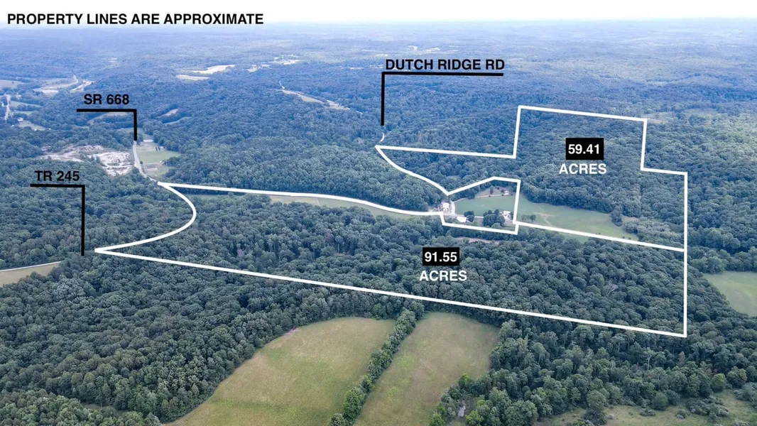 Any mineral rights the seller owns will transfer to the buyer but the seller is reserving all gas rights. Annual taxes will be determined by a new survey that will create these parcels. An additional 91.55 acres on the west side of SR 668 are available to purchase. No structures are for sale.