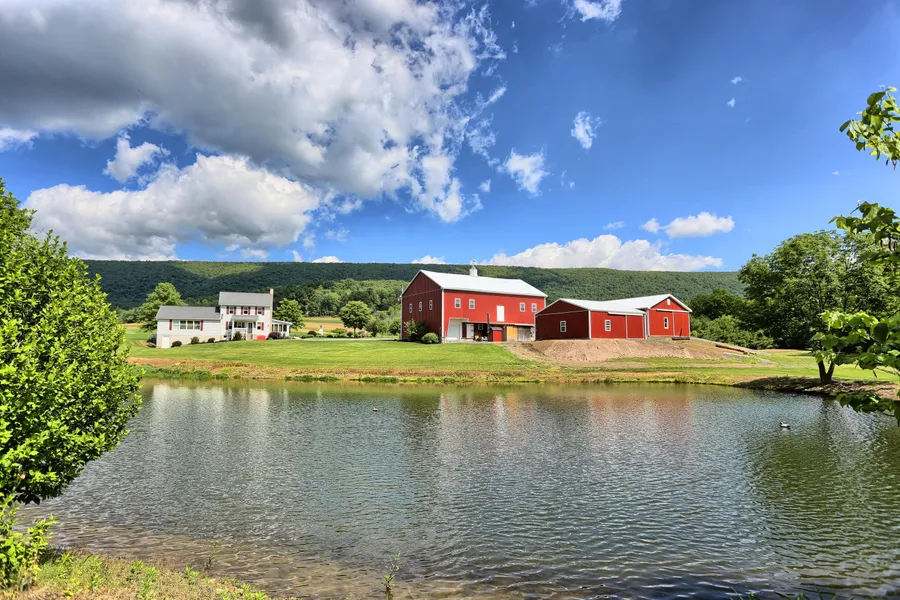 A very intriguing setting! 119+/- acre farm/recreational property. Stream, 2 ponds. Home fully remodeled in 2012. Bank barn & 2 pole buildings. Paved driveway. Plenty of privacy, open fields and deep woods with Mt. views. Multi- parcel property w/ dual rd. frontage
