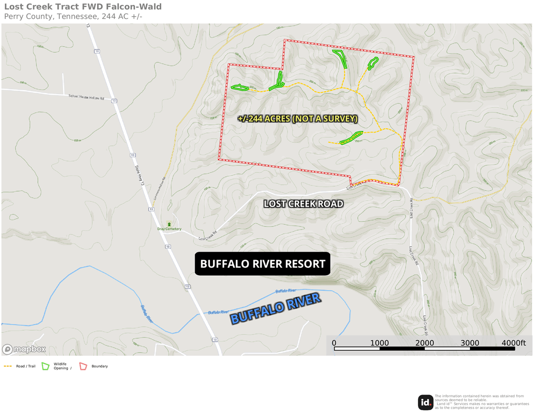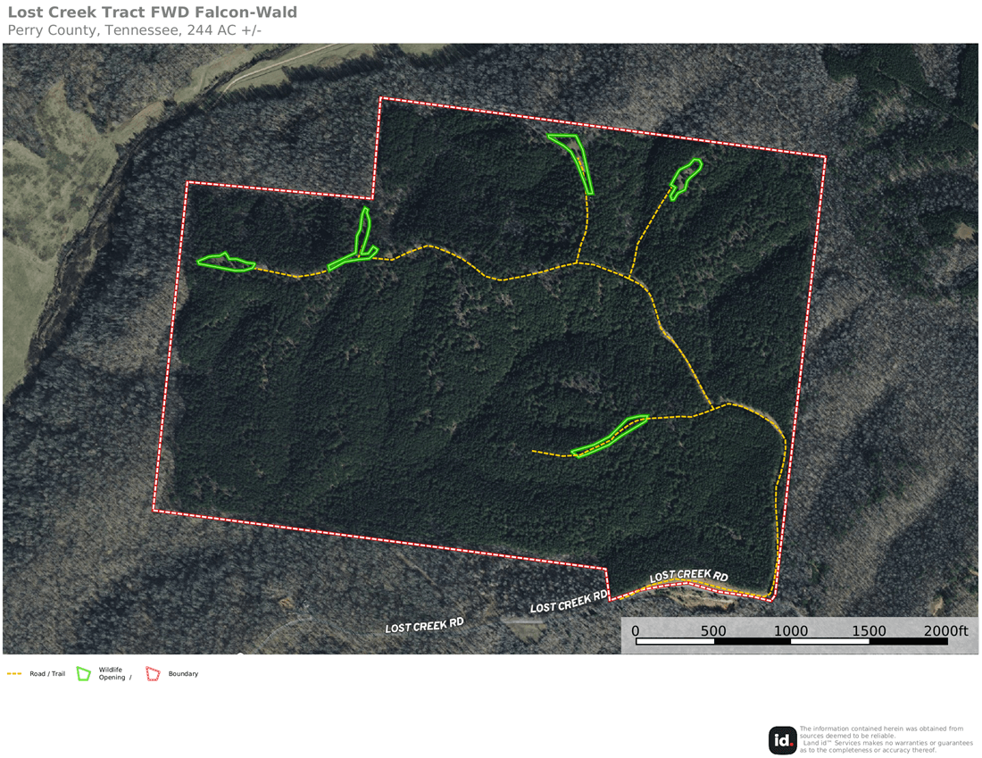 Located apx. 1 hr. west of Nashville, this Tennessee land for sale combines the privacy of large acreage with convenient access to amenities, restaurants, and lodging. Over 1,000 feet of paved frontage on Lost Creek Road, a quiet low-traffic county road, with fenced and gated frontage for privacy and security. Rolling topography with beautiful ridge views, a creek flowing through Gray Hollow, and well-marked boundaries make this tract easy to enjoy and maintain. A great established interior road/trail system provides excellent access throughout the entire property.